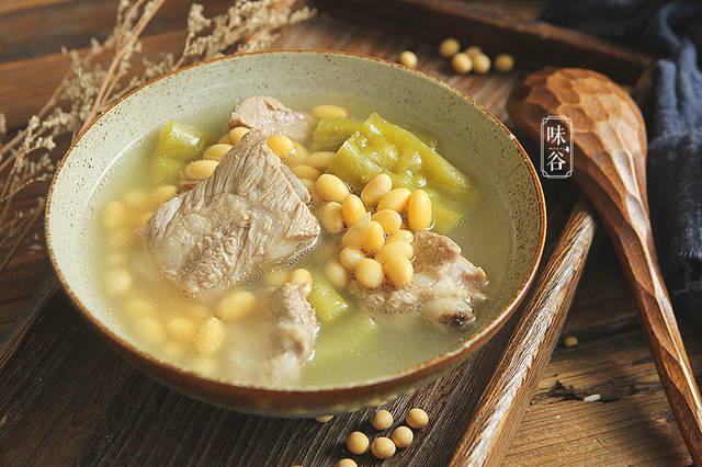 因为苦瓜味道比较苦,适当加点黄豆,有利于缓解苦味,并且可以丰富汤食的口感,煲出来的汤味道鲜美,清爽不油腻,汤水中没有苦瓜的苦味,反多了一丝清甜,是一款夏天不容错过的滋补消暑靓汤。而且苦瓜、黄豆中的维生素C含量并不低,食用能够增强吞噬细胞的吞噬能力,有利于为体液免疫提供原料,可以提高自身的免疫能力,适合体质虚弱的老人、小孩食用。非常值得一试!