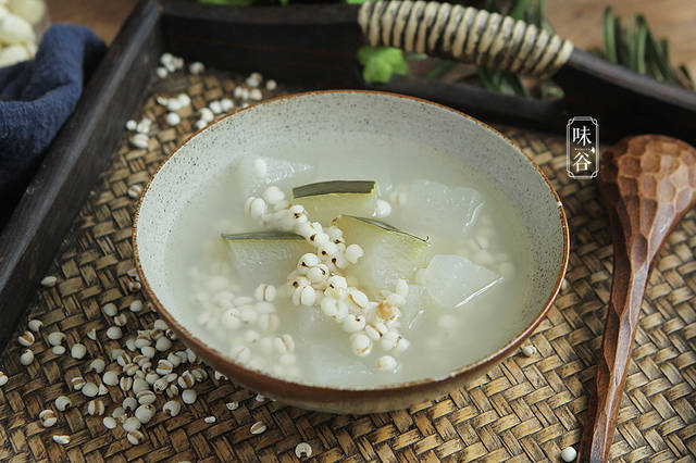 6月的夏至时节,越来越热的天气让人烦躁不已,在广东民间,每逢夏天都爱煲各种各样的糖水来达到清热消暑的目的。这糖水可不是简简单单的冰糖冲水,而是巧妙地运用各种食材搭配来熬制糖水,不同的搭配有不同的养生效果。今天我就分享给大家一道简单实惠的经典糖水——冬瓜薏米糖水,冬瓜和薏米都是祛湿的好食材,冬瓜利水消炎、除烦止渴、祛湿解暑,薏米能健脾益胃,利水除湿,二者一起煮汤,简单且美味、健康,陪你清热度夏。