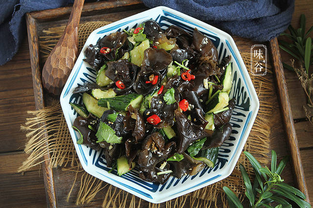 黄瓜中的能抑制体内糖分转化为脂肪,达到减肥的功效。而木耳中富含多种营养成分,其胶质体具有很大有吸引力,它能把残留在人们消化系统中的灰尘、杂质集中起来,排出体外,素有体内清道夫的美誉。二者搭配在一起吃,排毒、养颜、减肥,非常适合减肥的mm哦!喜欢吃冰凉一点的,在夏季可以放冰箱冷藏一下会更爽口哦!