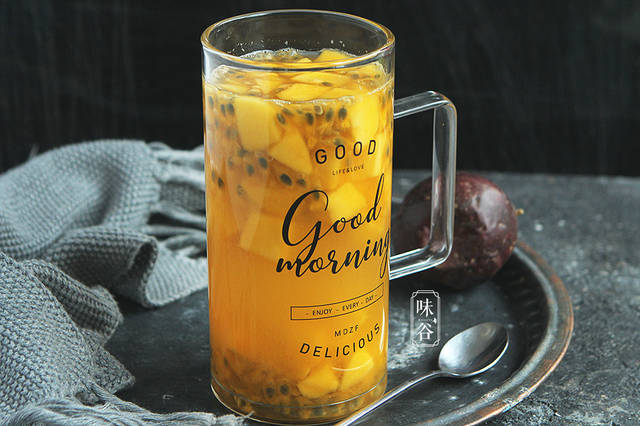 闷热的天气就想喝点冰冰凉凉又不腻的饮品。在饮料店里买的水果饮品虽然好喝,但最好不要多喝哦,甜腻腻的特别容易胖,自己动手制作的水果饮品不加浓缩果汁和糖精,新鲜又健康,而且绝对不比饮料店买的差哦!今天分享给大家的这款芒果百香果特饮,不用榨汁机,也不用搅拌机,5分钟就能轻松地做出来,好喝又便宜。百香果和芒果真是香的很的水果,这两个搭在一起制成饮品颜色好看,口感又好,酸酸甜甜且为纯天然食品哦,而且补充维生素,让肌肤美美哒。喜欢的朋友可以试试。