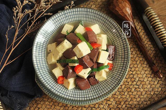 这里向大家推荐一种经济实惠的排毒菜——猪血炒豆腐,红色与白色的绝妙搭配,这道菜价廉物美,豆腐和猪血配在一起不到5块钱,不但颜色对比漂亮,而且菜的营养更丰富些,可以去除毒素,还可以美容养颜,大家记得要常吃哦。