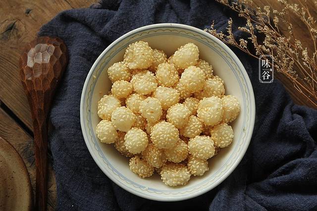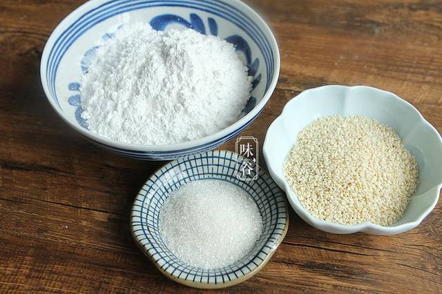 【材料】:糯米粉 100克、白芝麻 适量、白糖 40克