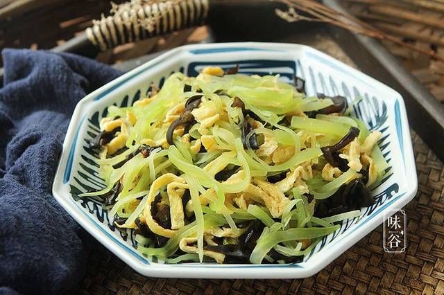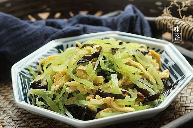 【材料】:莴笋 1颗、鸡蛋 2个、木耳 适量、盐 1茶匙、蚝油 1大匙