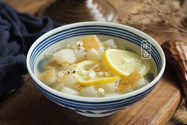 梨的吃法很多,可生食、可蒸煮,也可以榨汁。在这里推荐柠檬雪梨薏米糖水给大家,这是一款春季祛湿美白润燥糖水,做法简单,喝完后马上就可以感觉特舒服。雪梨本身含水及糖分,进食有种清润舒心的感觉,用冰糖煮制的汤水更是清甜可口。而且考虑到春季南方雨水多,人体容易受困于外湿,所以选择了清热利湿的薏米,再配以补充维C的柠檬,使得此汤水清热润肺、健脾利湿,适宜惊蛰前后外感咳嗽者,还有美白肌肤的功效哦~爱美的你记得要多喝哦~