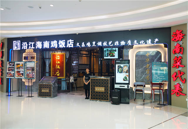 沿江海南鸡饭店位于蓝海购物广场的三楼,一走进来,门口就有一个很大的标识:中华老字号,朋友给我介绍,沿江海南鸡饭店也是海南省唯一的中华老字号餐厅,这里以海南四大名菜之首的文昌鸡为招牌,已经有83年的历史了。