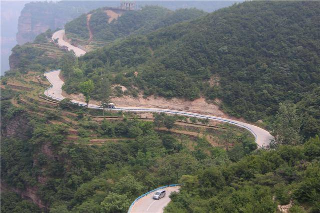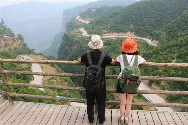 坐着景区观光车在巍巍太行的百里画廊一路行来,如果想俯瞰整个太行天路的风景,可以来到观景台,倚栏远望,只见云雾飘渺处,天路静如练,一条弯弯的公路随着青山辗转承接,蜿蜒起伏,举目四望,顿觉天地浩荡,神清气爽,北方的山有着大气雄壮的美。