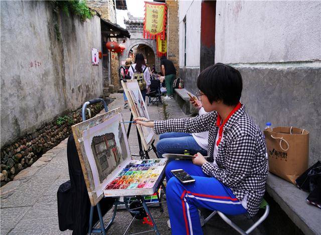 刚刚走进古镇,就被这里写生的学生吸引了。问了一下,他们来自于厦门,是专程来五夫镇写生的,这里的青石小巷,古老的建筑门楣,都成了她们笔下的风景。这里著名的景点有兴贤书院,朱子巷,环境清幽,游客很少。