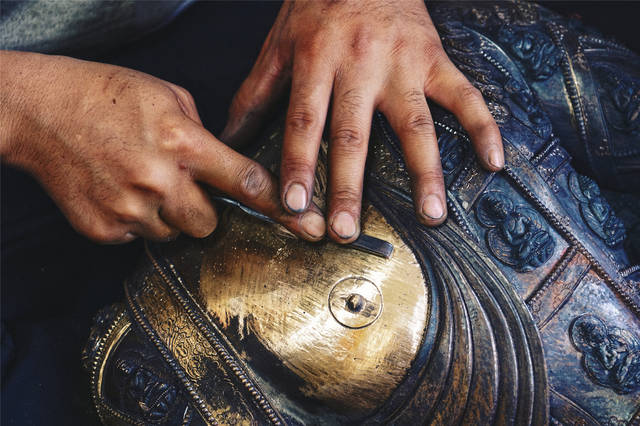 匠心之美 这是一个婆娑的世界,世事轮回,因缘际会,一切皆有定数,西藏是一个佛缘深厚的城市,这里大小寺庙有1700多座,在拉萨,看手工匠人一点一点铸造内心的信仰,是一个漫长而精细的过程,一尊佛像,需要两个熟练匠人耗时半年方可完工。