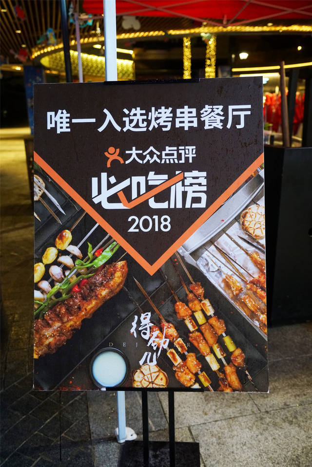 深夜觅食,沿着橡树林路一直走,无意间来到一家叫做得劲儿的焖烧烤串,名字起的很特别,里面的食客也特别多,一个吃货的经验判断,这一定是成都当地人喜欢来的地方,门口大众点评必吃榜,也证实了我的想法。