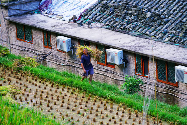 朗德苗寨是一个只有百户人家的寨子,寨子的门口就是一座风雨桥,站在风雨桥上眺望,对面就是依山而建的吊脚楼,全木质结构配上独具韵味的黑瓦,在葱翠的绿树掩隐下,犹如遗世的桃花源般,静谧而美好。