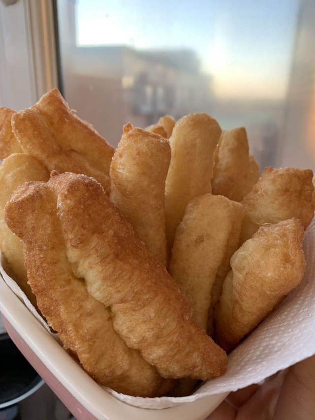 给宝宝做的这个油条非常好吃,松软有奶香味儿,炸出来的油条最好控一下油或者用厨房纸巾吸一吸油,我们自己做的油条里面没有加碱啊,膨松剂等不健康的东西,这样的油条在炸至过程中的吸油量是很少的,所以我们不用担心迟到过多的油脂。