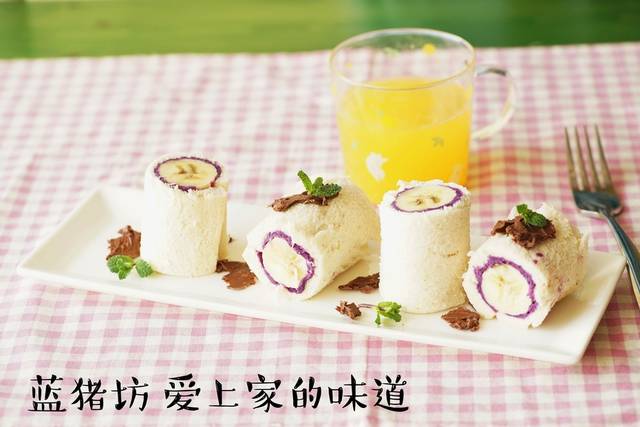 今天给大家介绍的这款甜品,甜品里用了香蕉和紫薯