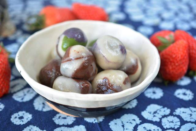 糯米粉50,婴儿米粉(红薯淀粉)20g,可可粉10g,水50g