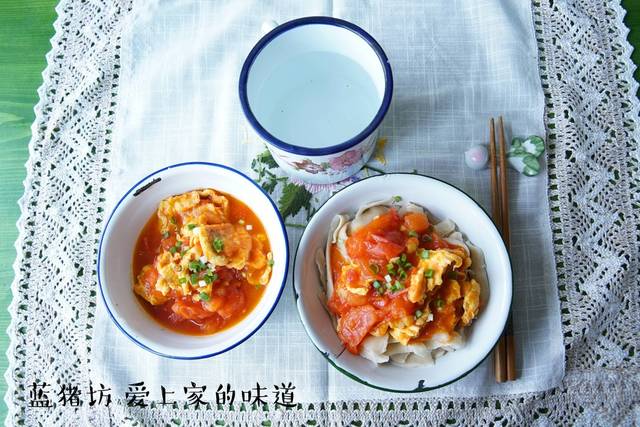 面粉200g,水100g,鸡蛋2个,西红柿2个,葱花3g,盐适量,清水适量,食用油适量