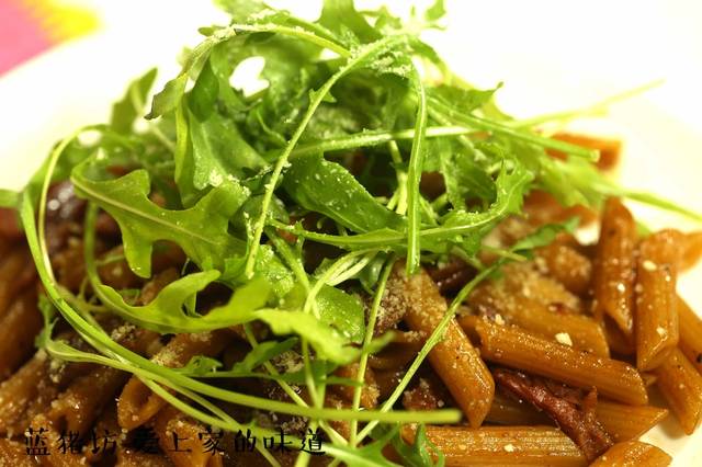 它用了米醋和胡椒,有了胡椒的麻辣和米醋的醋香~再加上干酪浓郁的香气和芝麻菜的清爽~虽然这个组合听起来很奇怪,但是试过的都知道。真的好吃到爆!