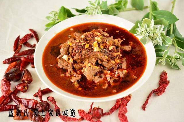 一盆火热红辣的水煮牛肉,麻辣味厚,滑嫩适口,香味浓烈,具有川味火锅麻、辣、烫的风味,但是少了火锅的燥热!水煮牛肉于1981年被选入《中国菜谱》。