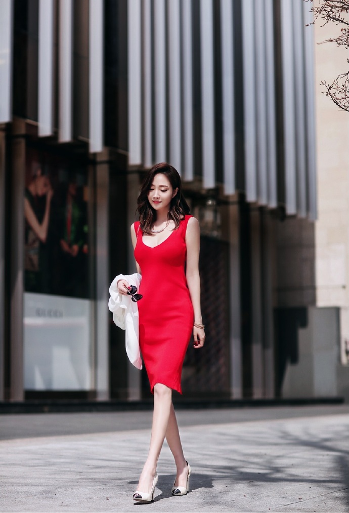 这个衣服也有一点收腰的感觉,同时美女手上拿了一款白色的外套,这个应该是一种防晒衣的款式。白色和红色其实也很配,因为就是就是这两种色彩,这样的话也让整体显得特别简约。而且这个衣服的细节特别好,特别是在尾部的这个感觉,既不会紧绷,又不会显得过分宽松。她手上的墨镜,戴在头上应该也是特别帅气的吧,想想那种感觉,马上气场一米八,你喜欢这种服装吗?