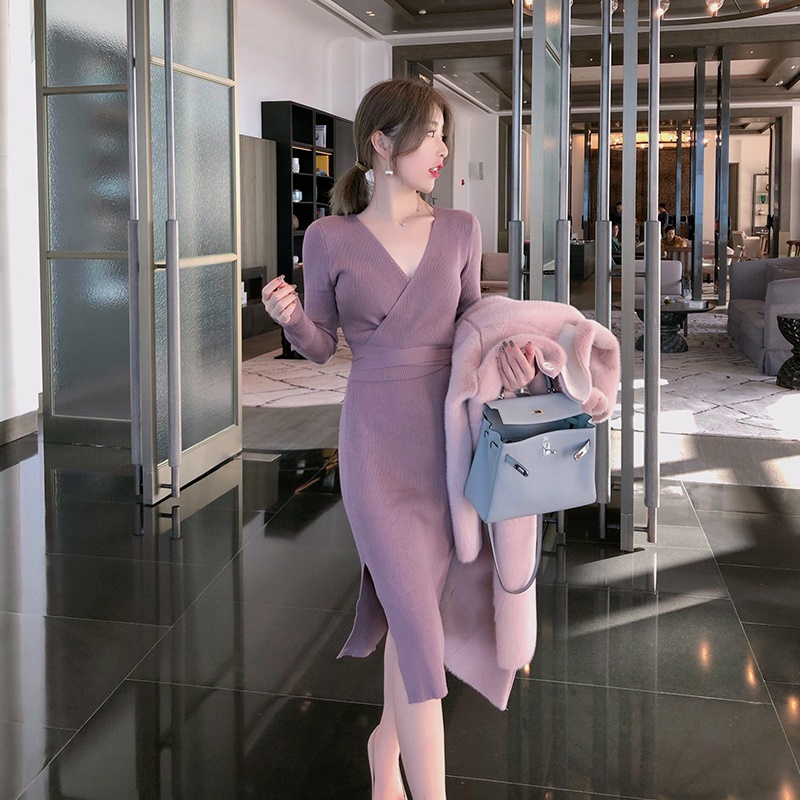 成熟OL,紫色深V长裙,尽显优雅干练气质。