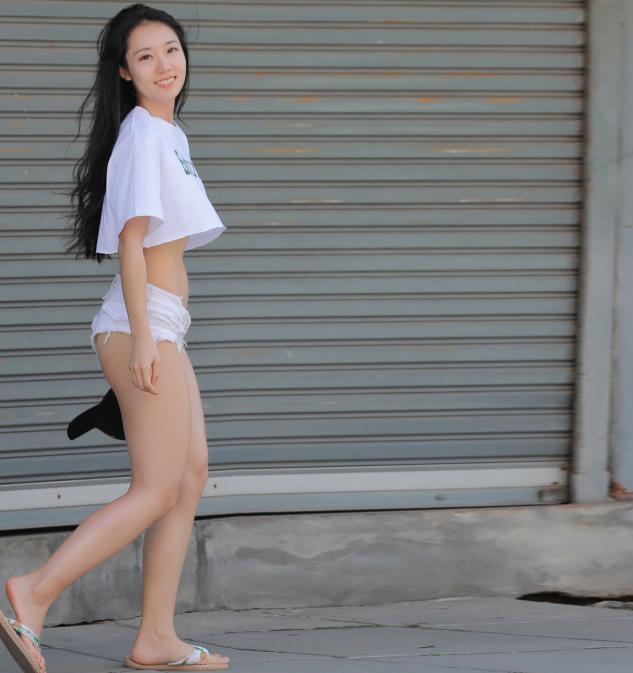 上面衣服,两个袖子比较大,而且是中袖的,带来一种很帅气利落的风格。她的身材和皮肤状态都特别好,下身的热裤是一块牛仔材质的,脚上是一个白色的人字拖,上面打结的设计,增添了一次淑女的气息。鞋子前面,后面都有金色的绣花,看起来非常的漂亮,后面有张图片,似乎能更加清楚地,看到鞋子上面的细节。