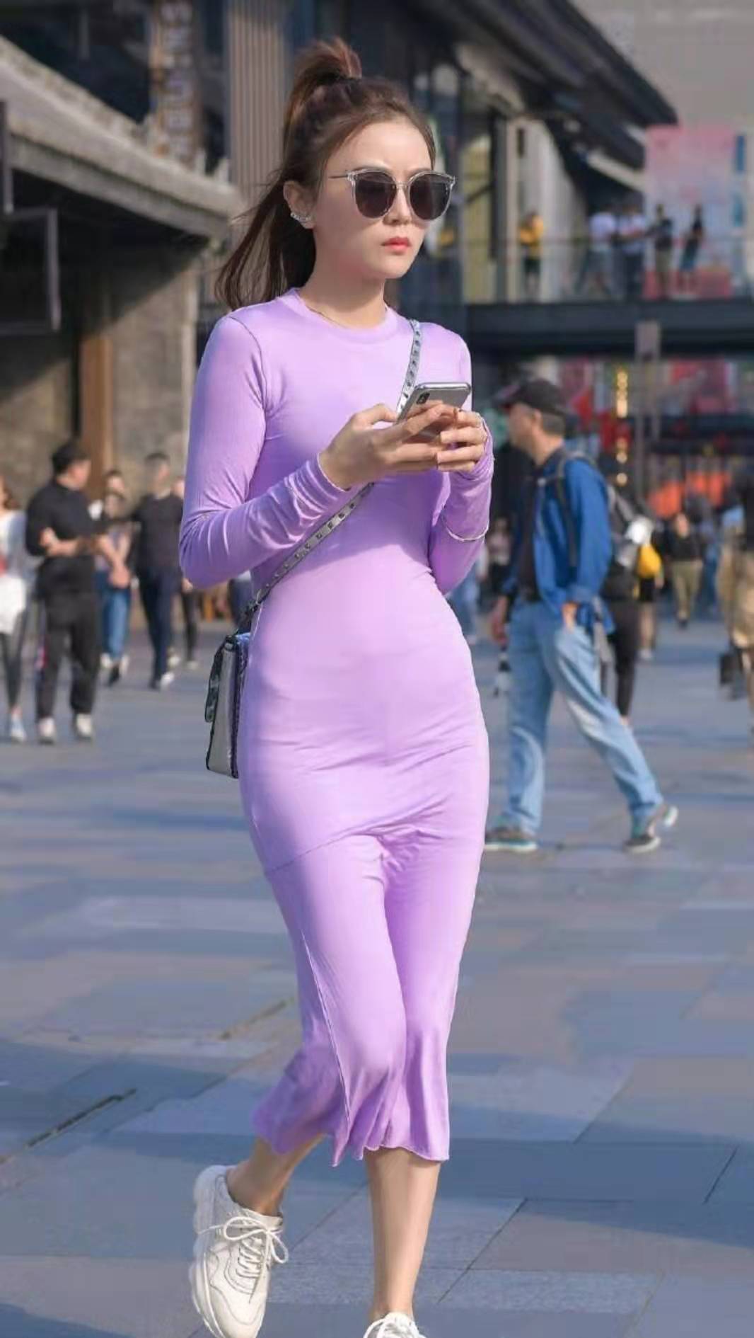 为了完美地身材,我们需要控制自己的欲望,就像下面这位女孩一样,保持完美身材才能穿上好看的衣服。她一路走来,最吸引大众的就是连衣裙的颜色。紫色是一种非常难驾驭的颜色,偏偏这个小姐姐hold住了,而且穿得非常美。紫色连衣裙属于修身款,把她的身材曲线勾勒出来,展现了小姐姐身材的凹凸有致,紧致迷人。连衣裙的面料是光滑的绸缎面料,在阳光下面料闪闪发光,有一种精致时尚感。