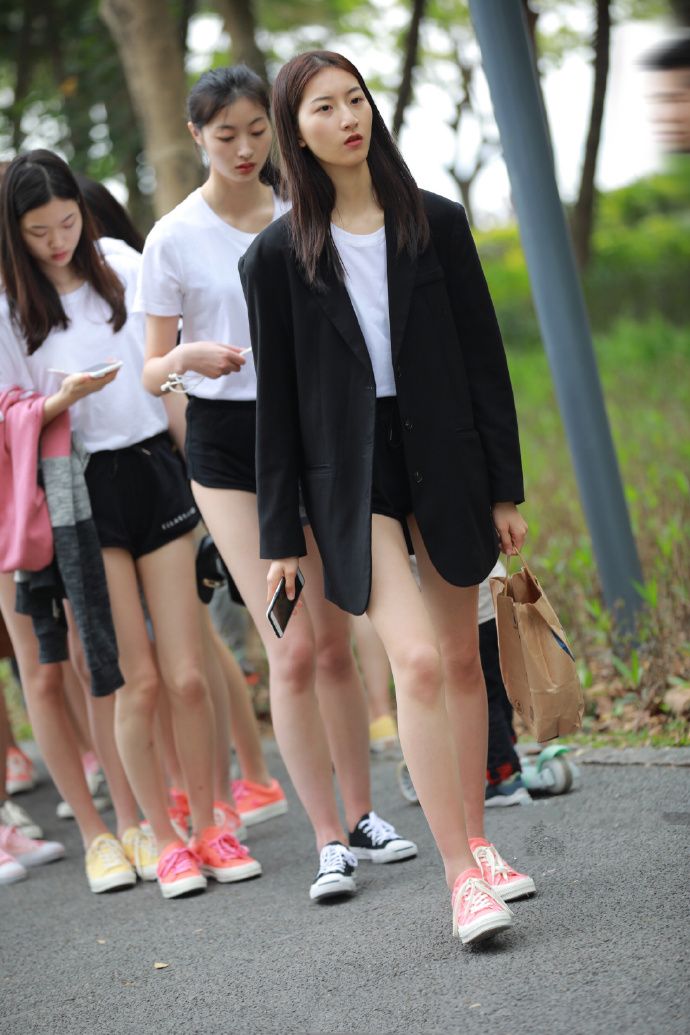 这次和大家分享的就是像这样的一种情况,所以就是和大家谈一下,比较适合群体穿搭的一件服装,让我们来看看这次的图片的穿搭是哪种类型吧?不得不说,满屏都是这个大长腿,而不是这些服装,因为这些女孩的身材就相当好。可能都是艺术类专业的女孩吧,这样的身材的确是绝了。特别是还有同一个动作的加成,气质这方面给满分。