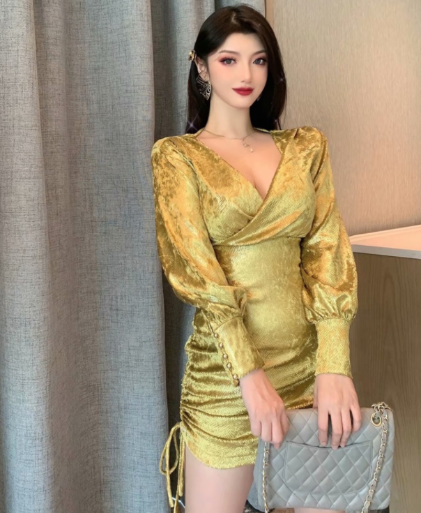 唯美小少妇,超闪金色连衣裙,展现不一样的气质。
