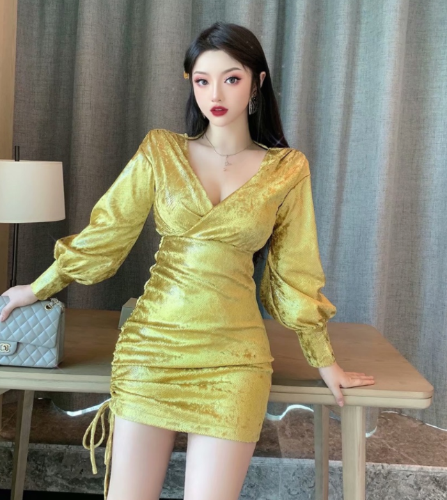 虽然他对于很多身材不是特别好的女孩子来说,这种款式的裙子简直就像是一种奢侈品,再加上这个颜色算是非常耀眼的了,可是像那种金闪闪的感觉,不但不会让整个人看起来非常的尴尬,这样的剪裁方式刚好可以凸出腰部的曲线,让整个腰部线条在大家的眼前若隐若现,可以说瞬间展现出了十足的女性韵味。