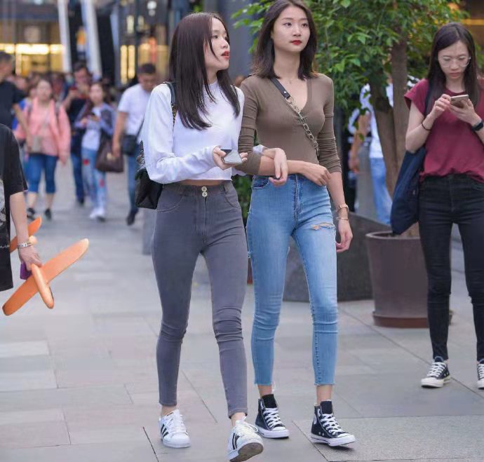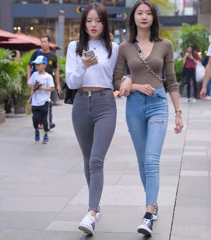 实际上我们可以看到这两位的身材都还是非常好的,而且裤子选择的风格大多一致,主要就是以紧身为主,而且材质相对来说也是比较舒适的那一种,看得出来,这完全就是为了长时间的逛街做好了充足的准备。所以说有的时候女孩子逛街时间长也并不是没有准备的,比如说像这样比较轻松舒适的穿着就是为了打持久战而做出的基本应对措施。