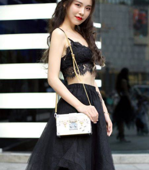 比如说这个身着小吊带的宝宝,一眼看上去就能让人眼前一亮,尤其是像这种吊带的材质,往往能让人觉得带有一丝神秘的感觉,而且下面的薄纱长裙还刚好凸显了女性的优雅气质美感,黑色的蕾丝花边透露着隐隐的神秘气息,再加上非常简单又具有气质的发型,简直就如同是遗落在人间的仙女一样,其实像这样的款式既简单大方而且舒适性也是非常好的,不管在什么时候都可以展现出最美的自己。