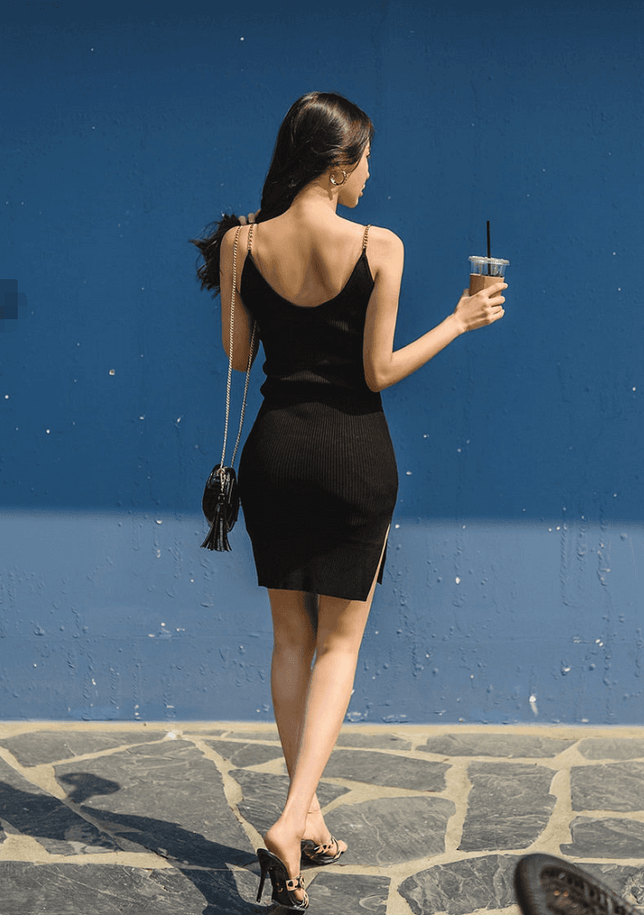 一群是女性衣柜中的必备之物,相信没有哪一个女生缺的了连衣裙,而黑色的连衣裙更是女性衣柜中最吸引人的那一个吧!见图片中的小姐姐穿了一件黑色的紧身连衣裙,吊带的设计非常的性感,更显示出了清凉的气息,让人看起来心情非常的舒畅啊!