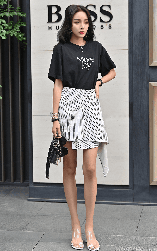 第四位小姐姐穿了一件正装,这件正装上半身是一件黑色的短袖,下半身是一件黑色的短裙,这样可以将小姐姐身材优势展现出来,小姐姐的腿看起来又长又白,叫你的穿衣搭配也是能够扬长避短,小姐姐的穿衣搭配也是非常不错呢!