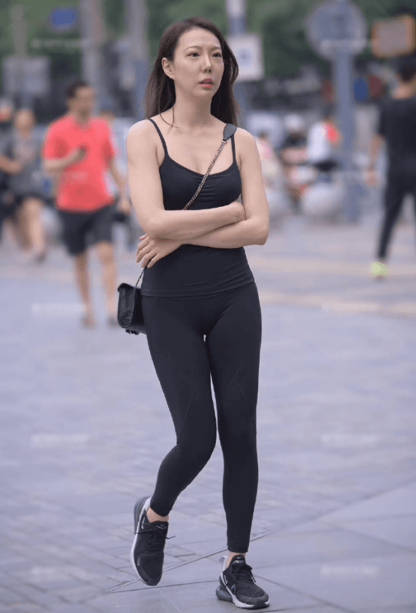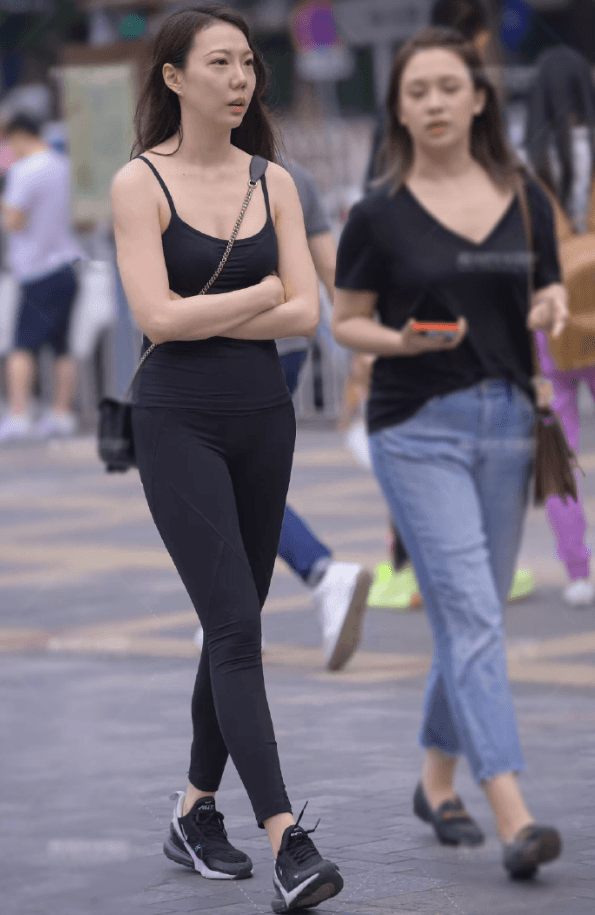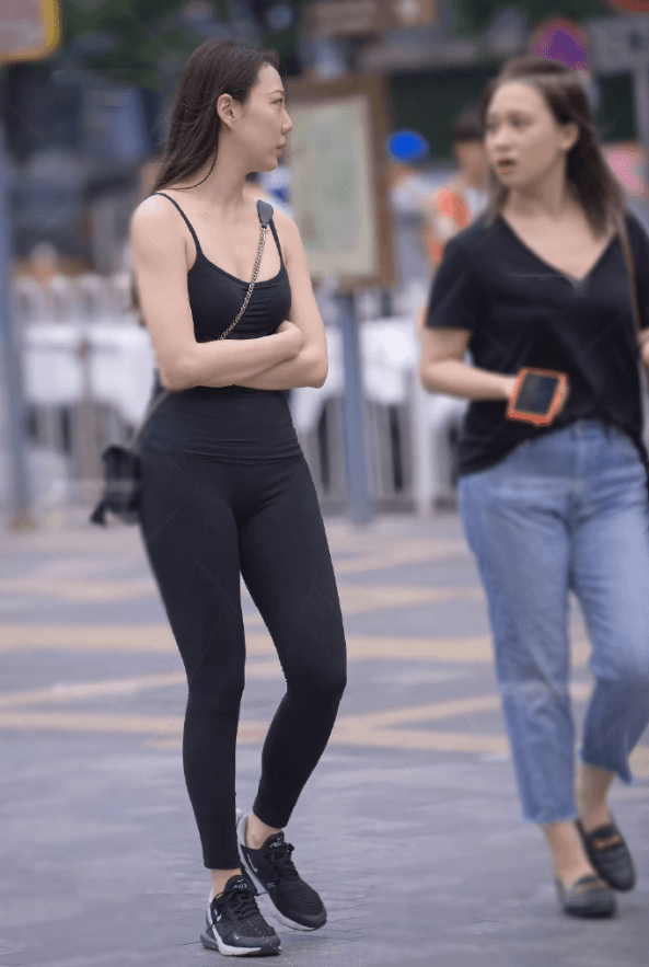 左边的这个小姐姐穿了一套紧身的衣服,她的上半身穿了一件非常紧身的黑色吊带,这件黑色吊带也是能够将小姐姐的好身材展现出来看的,出来小姐姐的胸部非常的饱满,并且还能看出小姐姐的事业线,给人的感觉是非常的性感,有魅力。小姐姐的下半身穿了一件黑色的裤子,这件黑色的裤子也是非常紧身的黑色,本来就是非常显身材的颜色,小姐姐穿上这样一套黑色的衣服看起来也是非常的性感有魅力了。