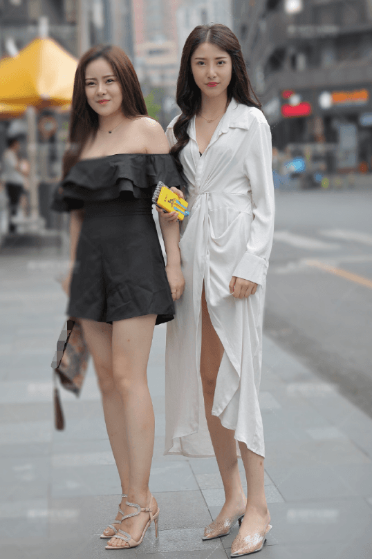 左边的这个小姐姐穿了一件抹胸的黑色短裙,这件抹胸的衣服让小姐姐看起来特别的性感,小姐姐这美丽的锁骨和这双匀称的大长腿完全的展现了出来,小姐姐的身材比例也被这样的衣服衬托得非常的不错。另外这件衣服还是非常的有设计感的,中间是收腰的,可以将小姐姐的腰部完全展现出来,腰部非常的纤细,这样也能够凸显上半身的丰满和臀部的性感。这样一件衣服穿在小姐姐的身上也是非常的合适了,右边的这个小姐姐穿了一件白色的连体裙,白色的连体裙和左边黑色小姐姐的短裙也是相得益彰,两个人的黑白配看起来也是非常的好看。小姐姐穿上这样白色的裙子给人的感觉是仙气飘飘,另外白色的这件衣服也讲小姐姐的身材比例看起来也更加的好看了,小姐姐的身高本来就属于非常高挑的类型,这样的衣服也是非常衬托出她优雅的气质,再配上一双高跟鞋也可以说是非常的完美了。