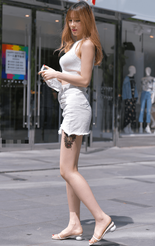 小姐姐下半身穿了一件白色的短裤,看来是要将这白色进行到底呀,不过白色的小姐姐穿上白色的衣服也是非常的合适呢,小姐姐这件衣服看起来也是非常的普通,但是重点是将两件衣服搭配起来给人的感觉就是能够将身材比例衬托得非常的完美,小姐姐的身材本来就非常的高挑,这样看起来身材比例也是非常的不错的,去看看小姐姐这样的穿搭应该是为了突出身上的这些纹身吧。
