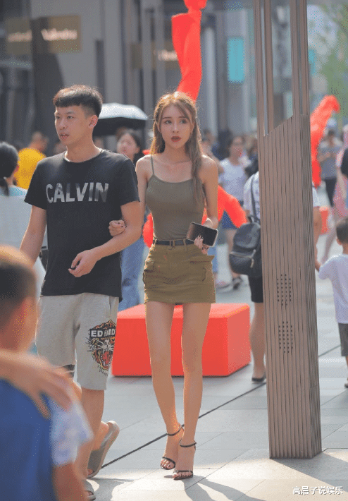 不管什么时候穿着吊带和短裤或者短裙出街都是最时尚的,尤其是当美女的身材非常好,穿着吊带出街简直就是最吸引眼球的。吊带真是女性最喜欢的一个搭配单品了,不管什么颜色什么款式都可以进行百搭,而它既可以搭配短裙,短裤或者是长裤,甚至还有很多人拿它来搭配外套,不管怎么搭配都很好看。就像我们看到的这位美女,用一件深绿色的吊带搭配着黄棕色的短裙,两个颜色算是同一色系,搭配起来非常和谐。
