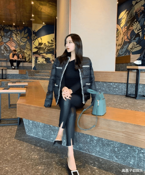 美女的下身穿的是比较凉快的,她穿着这件皮裤,脚踝都露出来了。但是没想到这位美女下面穿的这么凉快,上面却穿了一件黑色的棉衣,这件黑色的棉衣是短款的。而且看起来面料非常厚实,这件棉衣的款式也挺好看的,应该特别保暖吧,可是这位美女,你下面露着脚脖子上面穿的再厚也没有用。