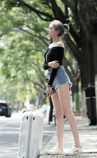 美女黑抹胸搭配短裤,芊芊玉腿令人心动