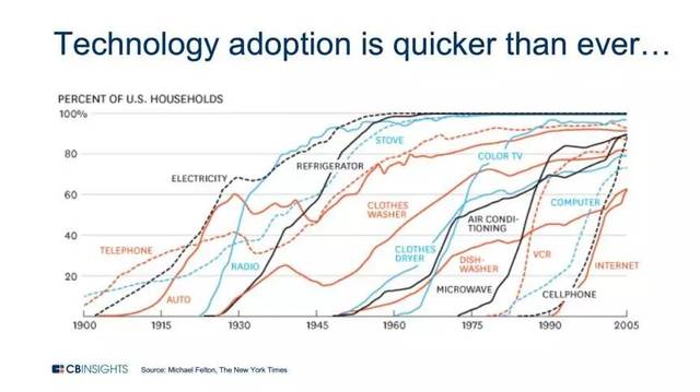 电话产业花了 150 年才达到 90% 的普及率,而现在的移动互联网,仅用 15 年便实现了快速渗透。我们常用的支付宝的发展也遵循了这样的规律。