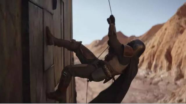 在 Disney + 美剧《曼达洛人》(The Mandalorian)的一幕中,这个名义上的赏金猎人用步枪干掉了一群讨厌的爪哇人,然后用抓钩爬上了在阿瓦拉 7 号行星沙漠中颠簸前进的巨大沙漠爬行者战车。