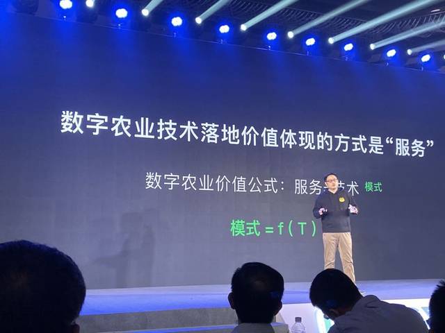 带着这些疑问,DeepTech 参加了一家专注于智慧农业领域的 AI 大数据公司,麦飞科技的 “麦向新农时代” 全球战略发布会。麦飞 CEO 宫华泽一开场带来了长达一个多小时的主题演讲,首先,他提出了数字农业落地价值公式:服务 =技术模式。
