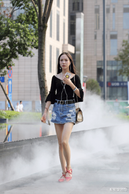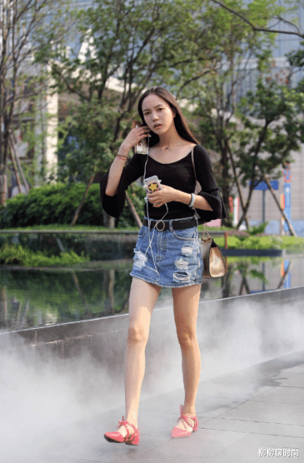 仔细看上去,小姐姐令人窒息的是哪一双红色高跟鞋,一双爱不释手的红色高跟鞋,走在迷雾的仙境中,牛仔短裙下面露出一双长长的大长腿,黑色的丝质上衣,更是将上半身的纤细展现的一览无余。