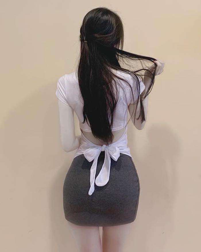 就像图中这个小姐姐,她就非常美,纵使她并没有露脸,但仍然给别人一种很优雅美的感觉。给别人这种感觉除了她本身就身材很好之外的原因之一就是她的撩头发的姿势很美,轻轻一撩秀发便自然而然的散落下来,要是在配上一个转头的动作就更好了。而另一个原因就是她自身的穿衣搭配很有讲究,她上身穿的是一件白中偏粉的颜色的短袖,大家应该都知道一般的短袖下摆都是比较宽松的,而这个小姐姐的短袖就有些不同。在后腰的地方开了个口,口下的布料打了一个蝴蝶结,这样显得出小姐姐纤细的小蛮腰,显得时尚而又美观。