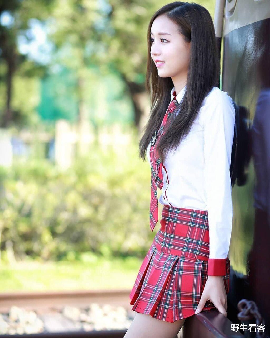 她穿着一条红色的格子百褶裙,非常的有文艺气息,而一双美腿在短裙的衬托下更显得白嫩性感,上衣是一件白色的衬衫,还大着红色格子的领带,很有学生范,这种清纯的美好简直有致命的吸引力,让人移不开眼,让人与摆不能,尤其是她婴儿肥的侧脸,漂亮的黑长直的长发,更增加了清纯美丽的模样,非常的性感撩人。