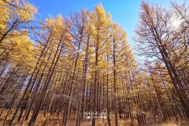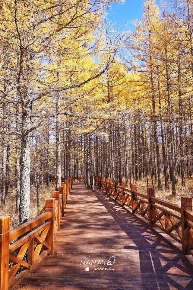 驼峰岭线,还有一个大峡谷,需要从天池站转车继续深入,这里深处森林的深处,神秘感剧增 游客一咕噜地往里涌,我们静待这无人的时分,总体来说,景区人真的很少 参天的落叶松,给即将冬日的 阿尔山 一丝最后的温暖