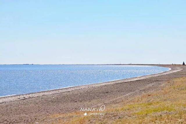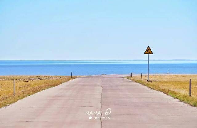如果不记得自己尚在草原,可能误以为真的来到了大海边,路的尽头是碧蓝的水域,鸟儿们悠闲从天上飞过