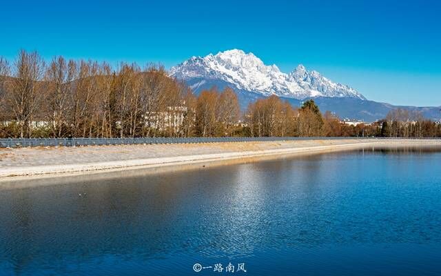 温暖的冬天,从大研古城口打车到北郊的清溪水库,用时不到二十分钟。清溪水库距离丽江古城口大约4.5公里左右,是丽江重要的饮用水源地,这里绿树成荫、曲径连拱桥,颇有几分江南韵味,不过比起秀丽的江南湖景,多了玉龙雪山这个壮丽背景。