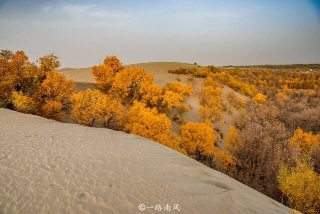 胡杨树被称为“沙漠上的奇迹”,它能够在极度干旱的沙漠地区扎根地底深处,挺拔生长,在冬天之前展现茂盛的生长状态。