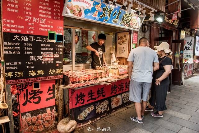 如今的劈柴院是青岛的海鲜美食一条街,这里的店铺面积不大,不过很接地气。这条街上并不全是游客,很多本地人也会过来消费。