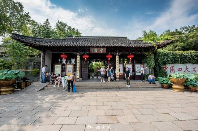 扬州最著名的园林是个园和何园,前者还是世界文化遗产,同时也是中国四大名园之一,和苏州拙政园、承德避暑山庄、北京颐和园齐名。个园门外和园内可以看到中国四大名园的标志,对于这个称号,民间是有争议的,在有的版本里,扬州并没有园林入选四大名园,个园的位置被苏州留园取而代之。个人认为个园的入选还是相对合理的,它的造园风格和面积大小都足以让它支撑起“名园”的称号,如果四大名园有两座在苏州,反而有一定的雷同度。