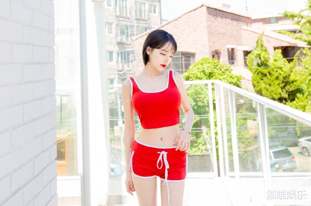 这位美女的长相也是比较乖巧的类型,看脸型和身材都是很完美的。一头乌黑的秀发,非常的靓丽有光泽,扎着低低的马尾,也是非常的漂亮的。主要还是颜值比较高,最简单的发型,也能那么的美。眉毛也是那么的秀气,眼睛大而有神,非常的漂亮。鼻子也是小巧而挺巧,衬托五官也是非常的立体。嘴巴也是肉嘟嘟的,涂上红色的口红,非常的好看,衬托皮肤也是那么的白皙。就是这张脸也是高颜值,吸引人的目光。美女穿着红色的运动上衣和短裤,这样的大红色,非常适合皮肤白皙的女生。